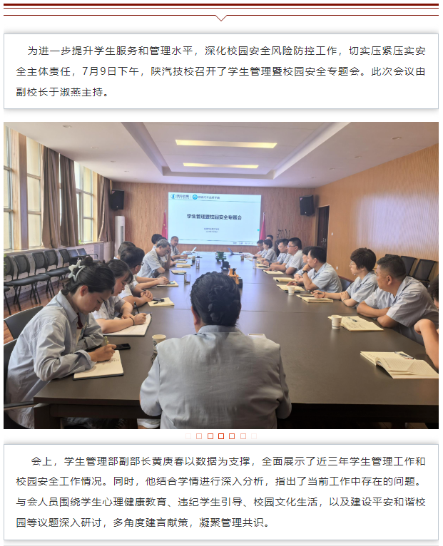 陕汽技校召开学生管理暨校园安全专题会