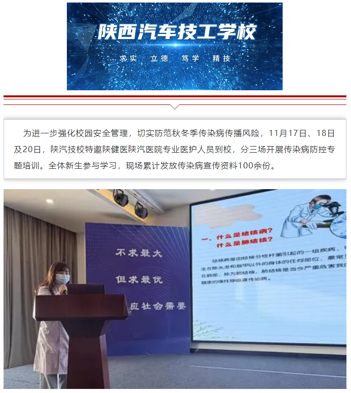 筑牢校园防线 护航师生健康|陕汽技校开展传染病防控专题培训