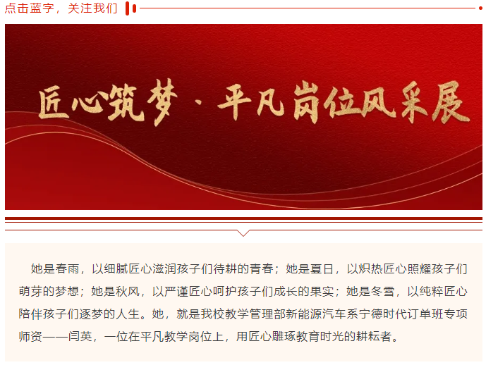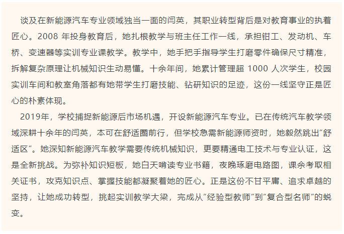 校园文化故事|平凡中的不凡——记陕汽技校新能源汽车系教师闫英