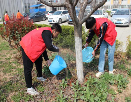 阳春三月,草长莺飞,冬天的寒意还未褪去,春天带着绿色的气息向我们走来,为增强学生保护自然的意识和热情,亲身体验劳动的乐趣,感受美化环境的意义,3月12日中午,陕汽技校团委组织40余名志愿者开展浇水护绿活动。