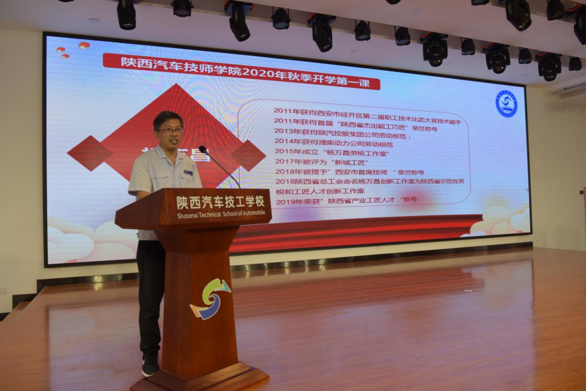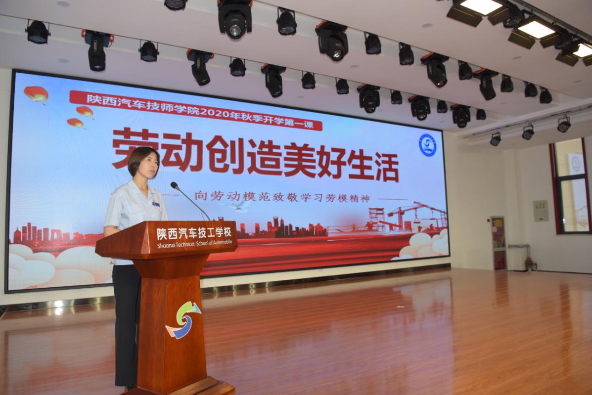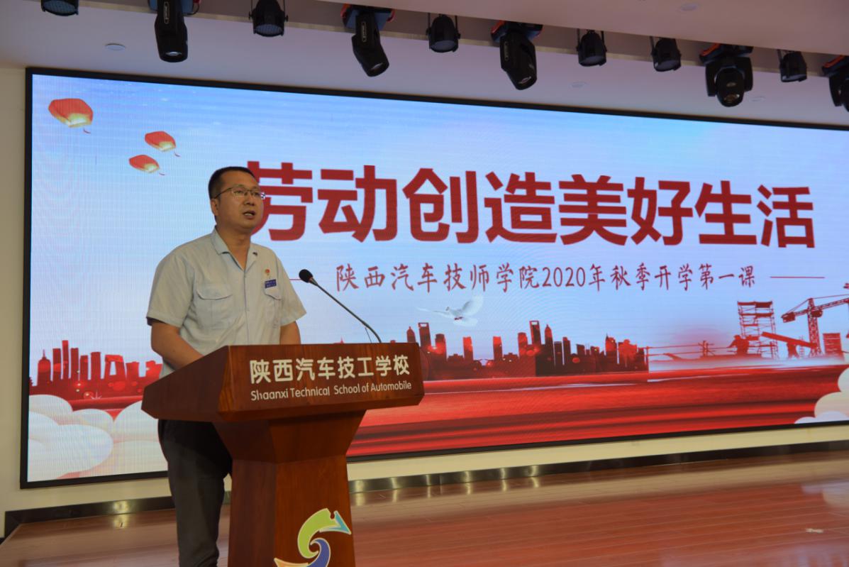 今年开学第一课的主题是《劳动创造美好生活》,以劳动创造美好生活,弘扬劳动光荣、技能宝贵,创造伟大的时代风尚,倡导劳动精神、劳模精神,工匠精神,引导学生理解和形成马克思主义劳动观,深入体会劳动创造世界、创造美好生活。活动由校长助理兼教学管理部部长于淑燕主持,校长李亚平主讲。为了让广大师生能进一步感悟劳模精神,体验劳动魅力,学校还邀请了“陕西省杰出能工巧匠”“陕汽控股劳动模范”杨万昌、“三秦工匠”“陕汽控股劳动模范”席小军为师生们做专题报告。