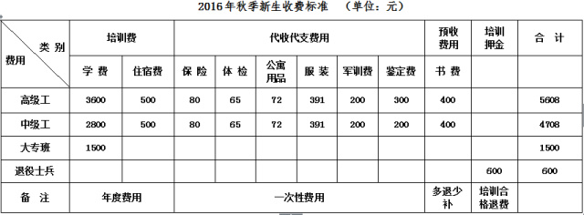 4、大专费:意向报考大专班的学生,参加成人高考录取后的年度费用。