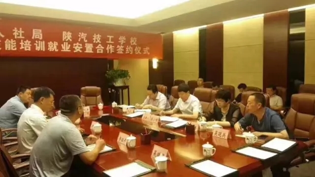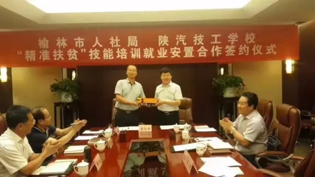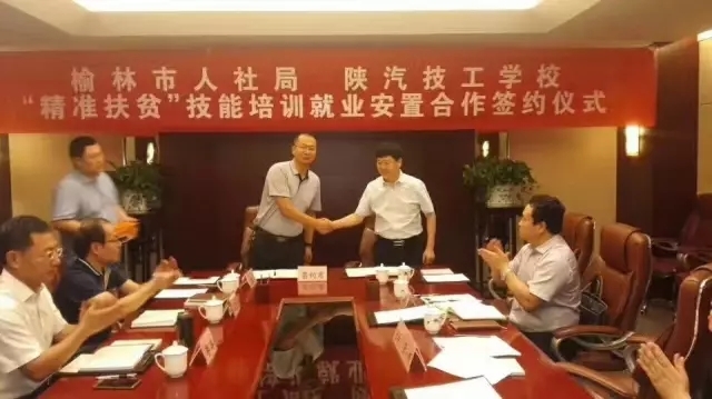 随后,榆林市人社局张小明局长与陕西汽车技工学校校长李亚平正式签订了技能培训就业安置合作协议。