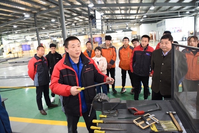 会前,举行了隆重的升国旗仪式。会后,陕汽劳模、陕汽工匠分别在学校实训培训基地进行了技能展示,同时对学校工匠班学生们进行了现场技术指导。学校工匠班的全体学生观摩学习了企业工匠们的绝活绝技。陕汽工匠薛东现场指导学生划线、锯削、锉削、钻头刃磨以及在大赛过程中如何抢时间、抓质量、增效益、赢得大赛成功等做出细致耐心的讲解。陕汽工匠文强主要针对打底焊时偏弧如何修正、填充焊的焊接速度、盖面焊的焊接接头做了详细讲解和演示,最后对学生近期练习的试件进行点评,并给予了肯定。三位高级技师、大赛获奖者悉心在现场指导和规范工匠班学生的动作,同时采用面对面交流的形式,回答和解决了学生们的提问和困惑的问题。