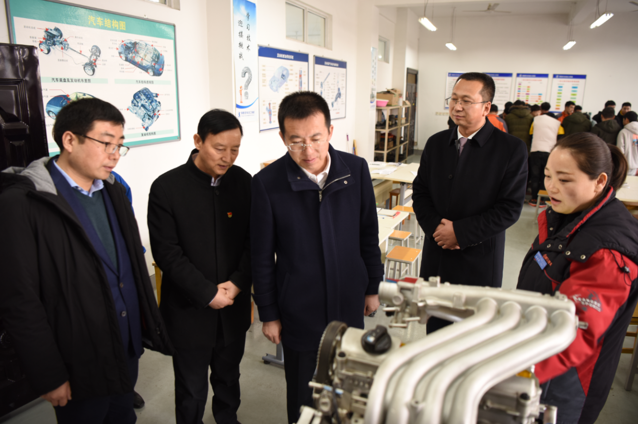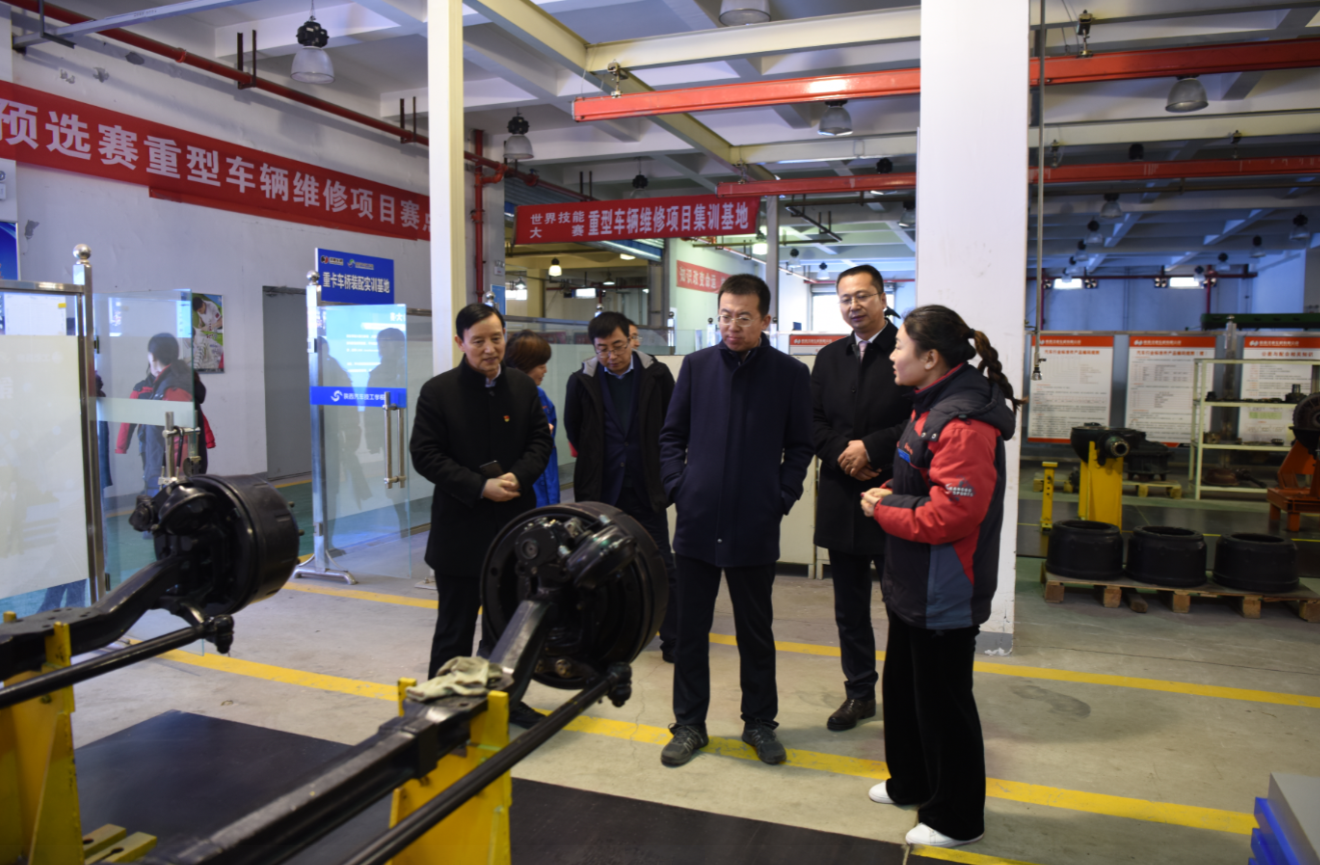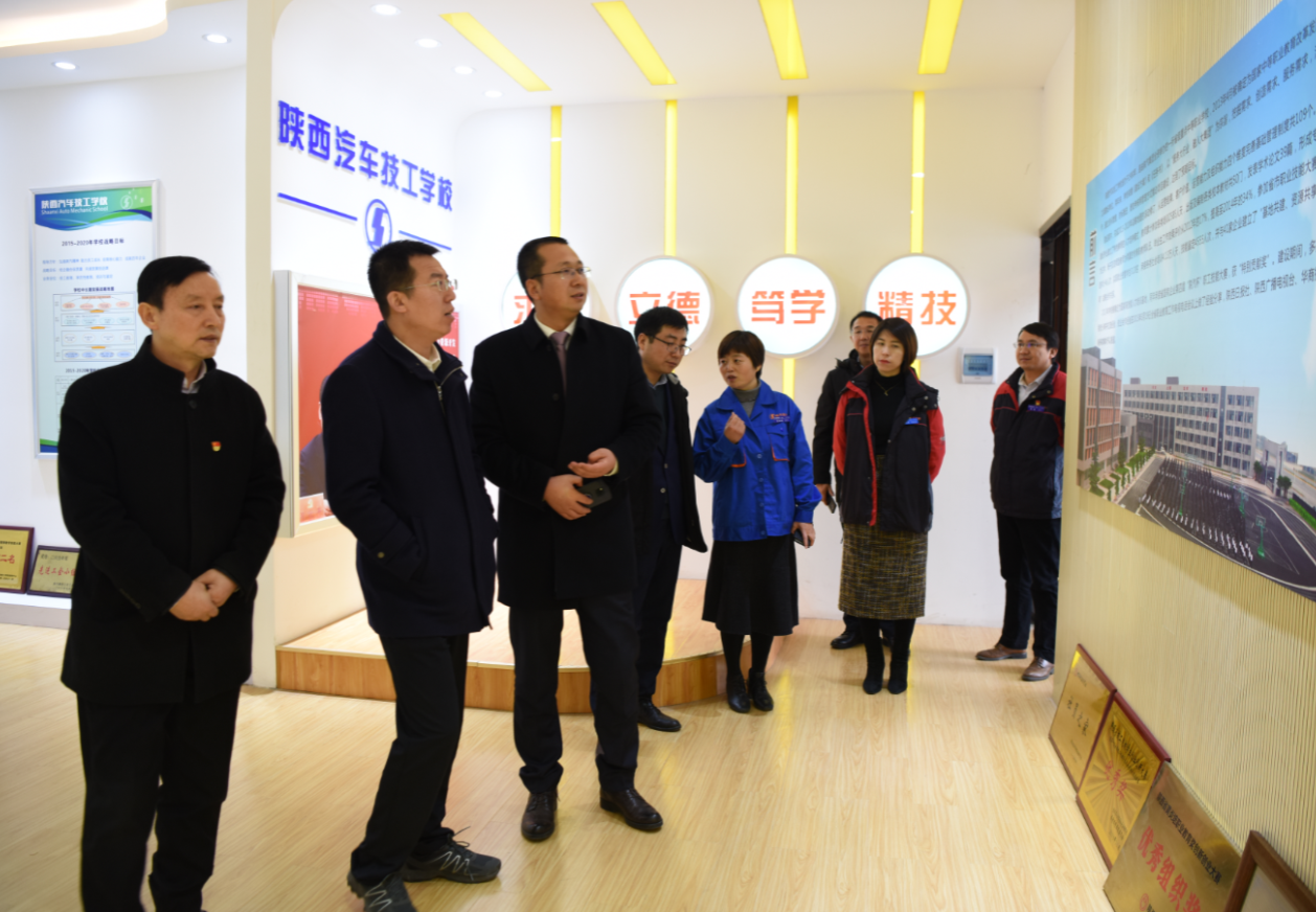 井厅长一行先后参观了学校展厅、变速器一体化教室、发动机一体化教室、汽车电器一体化教室、学校培训教室、中奥(陕西)国际标准焊接中心、世赛重型车辆维修项目省赛集训基地、世赛建筑金属构造项目省赛集训基地、陕汽天益产教融合技能型人才培养创业孵化基地等。