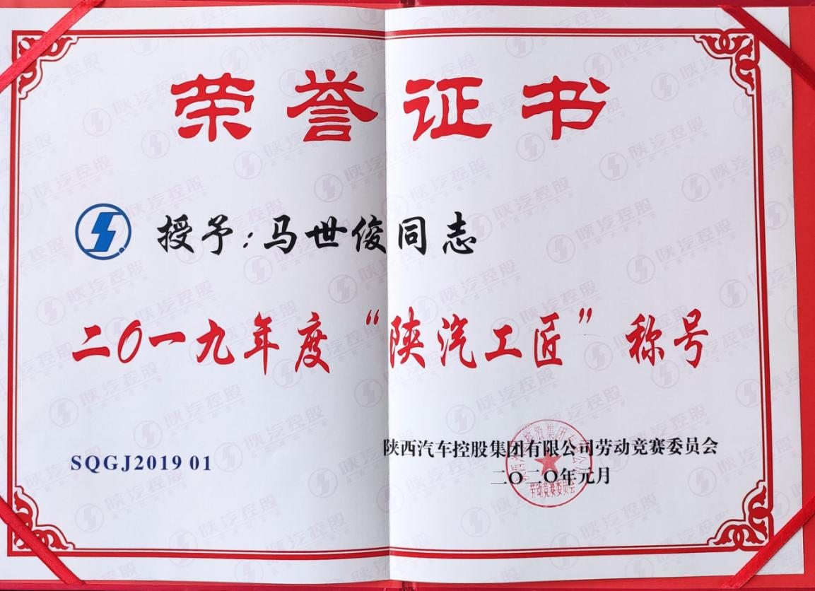 2020年4月28日,为全面学习贯彻总书记来陕汽视察讲话精神,表彰先进,弘扬“追求卓越 精益求精 勇于创新 淡泊名利”的工匠精神,充分发挥高技能人才在企业生产经营中的示范引领作用,公司工会表彰并授予10名职工2019年度第三届“陕汽工匠”荣誉称号。我校教师马世俊凭借其“做专、做精、做细、做实”精益求精的工匠精神和过硬的技术水平,获此殊荣。