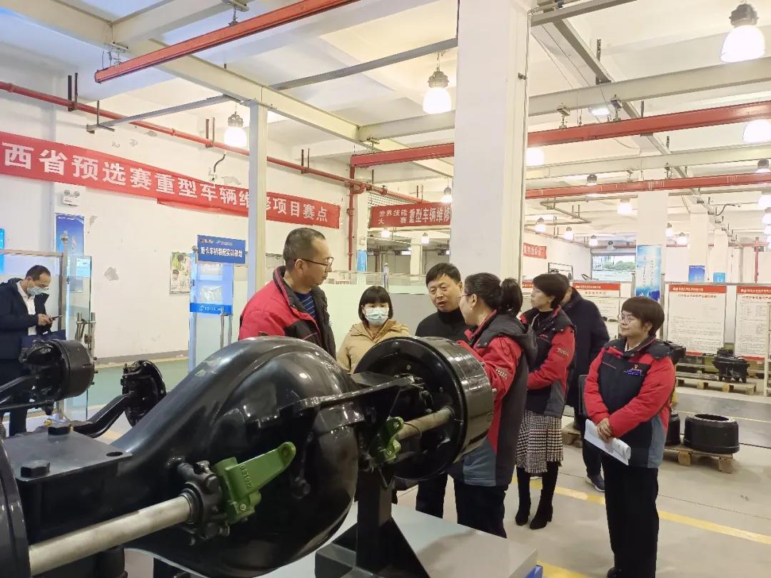 12月15日,陕西省总工会检查组,省教科文卫体工会主席徐富权、副主席唐煜弢,省能源化学地质工会副主席乐凤丹、二级调研员刘燕莉一行来我校就产业工人队伍建设改革工作进行调研。陕汽控股工会副主席赵亚会;陕汽技校党支部书记、校长李亚平,副校长于淑燕,校长助理孙东庆,培训市场总监魏斌,教师胡敏等有关人员在第一会议室围绕“产改”就陕汽技校产教融合校企合作建设职工职业技能实训基地建设等情况向检查组进行汇报。