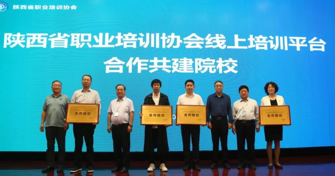同时,会议还就陕西省职业培训协会线上培训平台建设情况及共建共享方案进行了简要说明,省职协领导为第一批18家资源建设合作院校颁发了奖牌。李亚平上台接受了共建共享牌匾。