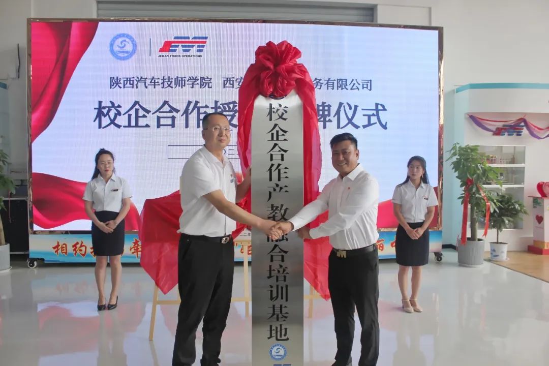 为了更好的满足陕汽商用车后市场服务板块对高技术技能人才的紧缺需求,有效服务集团战略,通过近2年的建设,我校与陕汽商用车西安培训中心西安捷马汽车服务有限公司共建、共享、共管合作的校企合作产教融合省级高技能人才培训基地建设项目在蓝田县新港工业园正式投入使用。5月21日下午,校企双方举行了隆重的授牌仪式,并召开了项目合作运营研讨会,学校副科级以上干部及捷马公司干部职工近50人参加了授牌仪式。授牌仪式及座谈会由学校副校长于淑燕主持。