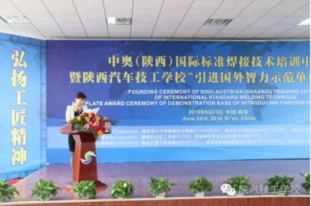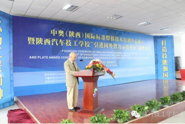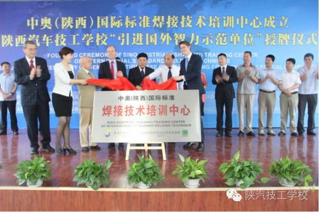 2016年6月23日,由陕西省人力资源和社会保障厅、陕西省中华职业教育社、陕西省外国专家局指导,陕西汽车技工学校、奥地利联邦商会WIFI实施,陕西汉德车桥有限公司、西安德森新能源装备有限公司、金龙汽车(西安)有限公司支持建设的——中奥(陕西)国际标准焊接技术培训中心成立暨陕西汽车技工学校“引进国外智力示范单位”授牌仪式,在陕西汽车技工学校学生活动中心成功举行。会议由陕西省人力资源和社会保障厅技工学校指导中心主任张春生主持。