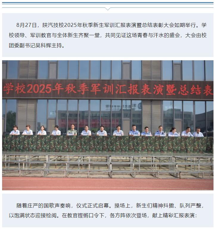 超燃!陕汽技校2025级秋季新生军训汇报表演暨总结表彰大会圆满闭营云