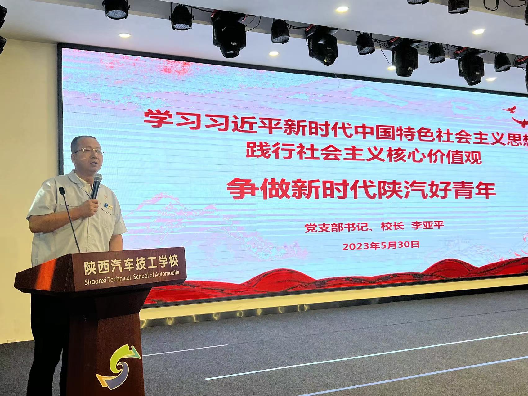 李亚平在题为《学习习近平新时代中国特色社会主义思想,践行社会主义核心价值观,争做新时代陕汽好青年》讲话中,首先对受表彰的先进个人和新团员表示祝贺,并带领大家重温了集团公司董事长、党委书记袁宏明对青年寄语,同时围绕“以生为本,推动学校学生管理工作再上新水平”提出五点要求,一是要充分发挥学生工作在促进学生全面发展中的重要作用;二是要积极转变学生工作模式,为学生综合素质的提高和个性发展创造良好条件;三是要建立健全学生工作制度,完善对学生的长效激励机制;四是要实施对学生的“四自”教育和分段式的教育引导,着重发挥学生完善个性、追求发展的自主性;五是要建立一支高素质的学生管理及班主任工作队伍。他希望全体师生不断创新工作思路,不断提高工作水平,努力开创学生工作的新局面。